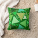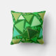 Mosaïque géométrique moderne du milieu du siècle Lancer oreiller - triangles soulignés dans les tons vert émeraude et jade, aqua et beige, sur un arrière - plan vert émeraude