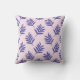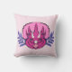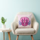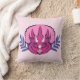 Cet oreiller de lancer présente des oeuvres d'art graphique représentant un joli dinosaure triceratops rose et violet flanqué d'abstraits feuilles violets.