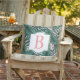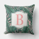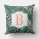 Coussin Tropical Foncé Feuille de Palmier Rouge Monogramme