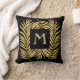 Des frondes de palmiers tropicaux élégantes, en faux or, sur un arrière - plan noir avec un monogramme d'or initial à l'intérieur d'un carré noir sont présentées sur ces coussins de lancer. Ajoute une belle touche à votre décor de maison ou donnez comme un cadeau de chauffage ou d'hôtesse. COORDINATION des articles dans notre magasin —> http://bit.ly/2JTL3xH <-