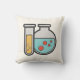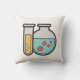 Coussin à l'illustration mignonne d'un tube d'essai tenant du liquide jaune et un ballon/bécher arrondi tenant du liquide vert avec des bulles rouges.