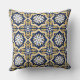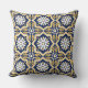 Coussin Tuile marocaine arabesque blanche or bleu complexe