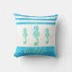 « Vie de plage ». Chaque fois que vous vous détendez sur ce coussin de jeté de bord de mer, vous pouvez être sûr que le plaisir de l'été au bord de la mer continuera. Trois hippocampes vintage ombrés de bleu turquoise graphique se superposent sur un fond blanc avec des rayures bleues turquoise à texture sablonneuse. Les choix de tissus intérieurs et extérieurs sont disponibles. Idéal pour la maison de plage familiale, votre style de vie nautique ou simplement pour apporter un peu de la plage dans votre maison toute l'année !