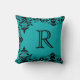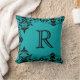 Accentuez votre maison d'une mode élégante avec un coussin de damassé de monogramme dans la sarcelle d'hiver et le noir.