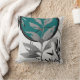 Coussin Turquoise gris et noir Abstrait feuille d'aquarell