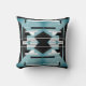Un design contemporain, abstrait, symétrique et géométrique en noir et blanc avec des éléments gris pâle est présenté sur un arrière - plan bleu turquoise ombragé, influencé par les styles amérindien, sud-ouest et méditerranéen. Il s'agit d'un motif exotique et contemporain qui évoque à la fois un art tribal et un motif en mosaïque. Il s'agit d'un design artistique et poli pour le salon, la chambre, l'espace de travail, la terrasse ou le patio et crée un sentiment de chaleur et de détente. Il y a beaucoup de potentiel décoratif dans cette pièce d'accent, qui s'intègre dans l'ambiance de nombreux styles, du rétro/vintage au ranch rustique en passant par le moderne urbain.