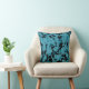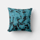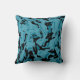 Featured are small, shapes in an overall contemporary print pattern in shades of light and dark turquoise on a black background. The overall design is suggestive of a modern art print in splashes of paint and creates a sophisticated, artistic, and elegant look, as well as comfortable, relaxing vibe for living area, bedroom, workspace, terrace, or patio decor, offering a feeling of warmth and tranquility. There is much decorating potential in this accent piece, which fits into numerous styles (innovative to traditional), from retro/vintage to farmhouse to modern ranch style to rustic hacienda to urban loft and high rise.