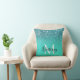 Créez votre propre oreiller monogramme personnalisé avec un élégant design de texte de police cursive écrit en noir et blanc de style classique monogramme simple lettre. La fausse parties scintillant turquoise est créée à partir d'une photo, et les étincelles blanches et le dégradé turquoise sont un graphique. Lorsque vous transférez la conception vers un autre cadeau, ajustez ou remplissez les deux graphiques pour vous assurer que la zone d'impression est couverte comme vous le souhaitez. Déplacez la conception du texte au besoin ou supprimez-la. Modifiez le style, la taille ou choisissez votre couleur préférée. Déplacez le faux graphique brillant blanc autour, ou dupliquez-les et créez-en quelques autres.