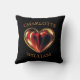 This black throw pillow features a large vibrant love heart with another smaller love heart within, in vibrant reds and yellows. Complemented with fiery red, orange and yellow toned text with "Twin Flames" and "Two Hearts Beat As One". A great gift for your twin flame, girlfriend, wife, soul mate. Happy valentines day. A.I. was used creating this design. To change the text click on the personalize button.