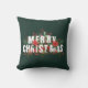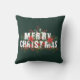 Typographie blanche Elegante Joyeux Noël Deep À feuillage persistant, Cette belle photo Christmas Throw Pillow présente des éléments floraux dessinés à la main dans différentes nuances de corail, rouge-blanc, menthe, turquoise, citron vert. On y trouve du pin, des fleurs, des sprigs, des feuilles, des baies et des bourgeons, ainsi que la typographie moderne en blanc, lisant "Joyeux Noël". La couleur arrière - plan est un à feuillage persistant profond, et le dos de la carte contient des bandes multicolores assorties