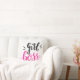 Typographie Boss de marque personnalisée N'importe quelle couleur Jetez l'oreiller Revamp votre espace de travail avec un design typographique branché avec les mots "Boss de fille" dans un script funky, disponible dans n'importe quelle couleur vibrante, accompagné de charmants motifs de coeur sur un arrière - plan blanc immaculé. Ce décor amusant apportera sûrement une touche de personnalité et d'élégance à votre espace de travail, ce qui en fait un environnement agréable et motivant pour toutes vos activités en tant que dirigeante féminine confiante.