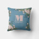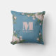 Joli rose rose coussin avec design de typographie et élégant, calligraphie, simple monogramme, avec rose et bleu, vintage, rose, personnalisé avec nom et monogramme initial