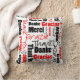 Un coussin à jetons sucré sur l'avant et le dos présente un collage de mots "Merci" rouge et noir multilingue dans une variété de styles de police sur le blanc. Cliquez sur personnaliser pour sélectionner une couleur arrière - plan autre que le blanc. Choisissez parmi d'autres options de style et de tissu.