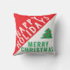 Typographie moderne rouge vert Noël Jour d'Oreiller. Fêtes de Noël coussin avec Joyeuses fêtes et Joyeuse typographie de Noël. Couleurs festives en vert, rouge et blanc. Un arbre de Noël simple. Grand coussin de Noël de Noël pour un sentiment festif de Noël ou un cadeau pour une famille et des amis. Vous pouvez customiser le texte ou l'effacer.