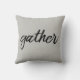 Conception simple avec seulement "rassembler" avant et arrière en police de script sur l'oreiller de lancement. Changez la couleur arrière - plan si vous aimez faire correspondre votre décor. Conception par Farmhouse Living.