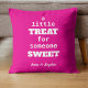 Grande lettre blanche, "Un petit régal pour quelqu'un de sucré" - nom personnalisé | Coussin de Saint-Valentin rose chaud. C'est un beau cadeau pour la Saint Valentin, mais aussi pour d'autres occasions. Cliquez sur le bouton "Customiser" pour modifier la couleur de l'arrière - plan, les styles de police et la couleur de police.