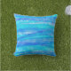 Décor maison, bleu, bleu aqua bleu et violet vagues océan abstraits arts numériques coussins.