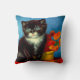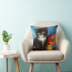 Coussin avec un beau chat Van Gogh tuxedo ! Ce petit chaton pose à côté d'un panier de fleurs orange sur une table rouge. Un grand cadeau pour les amoureux de les chats et les collectionneurs d'art hollandais !