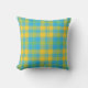Coussin Vert, Bleu Ciel, Motif Plaid Jaune