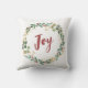 Ce magnifique coussin de vacances présente une couronne d'aquarelle festive de feuilles d'or, de verdure de Noël et de baies rouges sur un arrière - plan noir moderne. Le mot "joie" est présenté dans la calligraphie rouge et élégante.