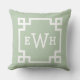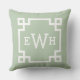 Coussin Vert sauge classique clé grecque monogramme initia