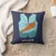 Créez un cadeau personnalisé qui conviendra parfaitement aux amateurs de ski nautique et de sports nautiques. Cet oreiller ou coussin de jetons présente l'illustration d'un skieur d'eau orange, bleu clair et bleu turquoise dressé en forme de gilet de sauvetage contre un arrière - plan bleu marine. Ci-dessous est un endroit pour ajouter un nom en lettres blanches. L'envers est un bleu turquoise de coordination.