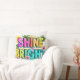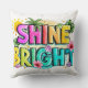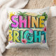 Un design Coussin dynamique et gai avec l'expression "brillant" entourée d'éléments tropicaux comme des palmiers et des fleurs d'hibiscus. La typographie audacieuse et les couleurs vives créent un look positif et énergique, parfait pour les vibrations estivales.