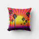 Coussin Vibrant Retro Sunset Palm Tree Throw Pillow on Whi