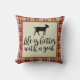 Amusants lancer oreiller caractéristiques chèvre silhouette avec "la vie est meilleure avec une chèvre" texte dans le script moderne et la bordure marron/tan plaid