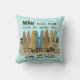 Un coussin d'amusement pour la maison de plage ou la maison de vacances par le rivage. L'avant du coussin indique, le feu fait par homme alors il a fait le longboard et la vie était bonne. Le coussin de retour est vide mais vous pouvez ajouter votre propre message si vous aimez. Vous pouvez changer la couleur d'arrière - plan du coussin pour adapter à votre décor, actuellement montrée dans un bleu pâle d'aqua. ©PamJArts