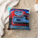 Cet coussin a un vieux camion rouge sur lequel on peut voir.