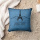 Coussin Mojo Vintage Grungy mais élégant en bleu foncé avec un design tour Eiffel agrémenté de tourbillons et de points chic et d'un arrière - plan texturé en faux papier. Ce coussin à thème parisien unique apporte une touche de fantaisie à la décoration française ! Facile à customiser, ajoutez simplement le texte personnalisé de votre choix dans le champ de texte fourni. Cliquez sur le bouton "Customiser" pour trouver d'autres options de personnalisation.