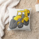 Une conception fraîche d'un bêcheur jaune. Le bêcheur est dans un état inactif. Le corps défonceur est jaune avec les roues grises et le seau gris. Cette conception défonceuse jaune semble grande sur ce coussin