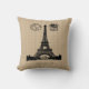 Carte postale Vintage avec la Tour Eiffel sur un arrière - plan de style burlap.