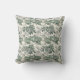Beautiful vintage green and white Christmas toile pattern with kids building a snowman Christmas pillow for your perfect decorating.