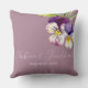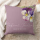 Cet oreiller romantique à jetons mariage possède un design floral. L'arrière - plan est un violet roux simple et élégant avec des violettes aquarelles. Un délicat bouquet de fleurs violettes est en haut à droite, avec les noms du couple et la date mariage imprimés ci-dessous.
