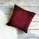 Tapis rouge turkestani motif aux formes géométriques : carrés, rectangles, motifs en grille .Tapis typique d'Asie Centrale du 18ème siècle. L'illustration antique a été publiée dans un livre en allemand "Der Orient-Teppich à Geschichte, Kunstgewerbe und Handel" 1917 Il a été édité et appliqué sur ce coussin par Alma Wad.