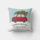 Coussin Voiture rouge transportant l'arbre de Noël le plus