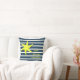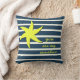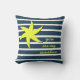 Cute coussin à thème nautique, bleu marine foncé et rayures crème, avec une étoile jaune / soleil, et le verset heureux : vous êtes mon soleil dans l'écriture manuscrite jaune assortie ; parfait pour égayer n'importe quelle chambre, dortoir, ou maison de plage!