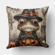 Warts & Wonders Jeter l'oreiller Une grenouille aux yeux larges en costume noir et un casquette aux sorcières surmonté d'un crâne perchent au-dessus d'une lanterne clignotante, entourée de figures fantomatiques, de morceaux de papier vieilli et d'une lanterne scintillante. Avec un deuxième citrouille, un fantôme suspendu, et des vestiges éparpillés d'Halloween à proximité, la scène mêle fantaisie gothique et malice magique. Des ombres et des notes manuscrites effervescentes ajoutent du mystère à ce moment enchanteur de calme éffrayant.