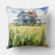 Cet oreiller à jetons présente une image aquarelle d'une ferme au toit orange entourée d'un champ de maïs. Un beau ciel bleu trône au-dessus. C'est le coussin idéal pour quiconque apprécie la beauté simpliste de la vie agricole.