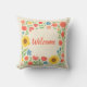 Welcome guests to your porch or patio with this vibrant floral pillow. This two-sided design can be personalized with your name or other text. The floral pattern is derived from a watercolor illustration. The pillow is showcased in a protective fabric suitable for outdoor use, with indoor polyester or cotton fabric options also available.