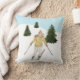 Coussin Watercolor Girl Skiing In Winter Slopes With Trees
