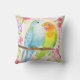 This decorative throw pillow showcases hand-painted watercolor lovebirds resting on a flowering branch, framed by soft pink and purple blooms beneath a warm sunset sky. Finished with delicate pen details, this romantic nature-inspired design adds a gentle touch of love and beauty to sofas, chairs, or bedrooms, making it a cozy accent for weddings, anniversaries, or everyday home décor.