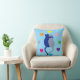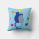 Coussin Whimsical Blue Cat Pillow With Rainbow Hearts