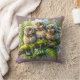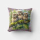 Coussin Whimsical Three Owens in Forest - Nature Art
