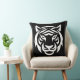 Add a touch of wild elegance to your home with this black pillow featuring a striking white tiger face.
