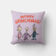 This heartwarming illustration captures the true meaning of Christmas! It features three colorful Whos of Whoville standing together, holding hands, and smiling with their eyes closed, looking like they are happily singing or swaying. They are dressed in unique, whimsical Whoville outfits (pink fringe, purple zigzag, blue stripes). Arching cheerfully above them in bold red text is the phrase: "MERRY GRINCHMAS!" This graphic perfectly embodies the communal and sweet spirit of the holidays!
