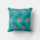 Lancer l'oreiller dans un vintage William Morris, Art Nouveau, imprimé floral de chrysanthèmes stylisés, numériquement rehaussé et coloré, dans les tons doux aqua et bleu turquoise cérulean, et violet / lavande, sur un arrière - plan turquoise / paon