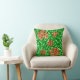 Jetez l'oreiller dans un William Morris Art Nouveau motif de fleurs de miel allaitent contre un arrière - plan de vignes et de feuilles - fleurs dans les tons de corail orange et de corail rouge, avec feuilles vert émeraude, contre un arrière - plan vert pastel